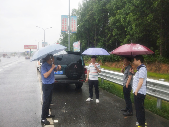 6月16日上午,市公路管理處黨委委員、總工程師吳煥仍,橋隧科科長李衛(wèi)華一行冒雨到綿江路檢查汛期安全工作,路橋公司副總經(jīng)理蘭小松、養(yǎng)護(hù)事業(yè)部相關(guān)人員陪同檢查。