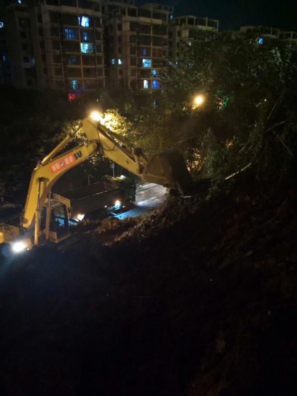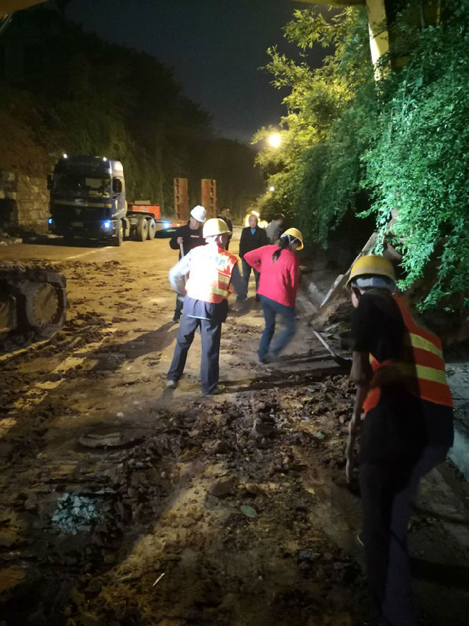 9月16日下午,該處道路邊坡?lián)跬翂σ蛲临|(zhì)松軟突然發(fā)生大面積垮塌,造成道路中斷,給過往車輛和行人通行造成不便和安全隱患。接到險情緊急通知后,路橋公司副總經(jīng)理張鵬及相關(guān)部門負責人員迅速趕到現(xiàn)場實地查勘,并立即啟動應急搶險預案,共組織大型挖掘機三臺、運渣車16輛,工人十余人趕赴現(xiàn)場進行搶險。在確保安全的前提下,搶險人員履職盡責、日夜堅守,強化責任擔當,密切協(xié)作配合,發(fā)揚了不畏艱苦、不怕疲勞、連續(xù)作戰(zhàn)的優(yōu)良作風,通過一晝夜奮戰(zhàn),清運垮塌土方共計1600立方米,爭分奪秒搶通了道路,堅決有力的完成了搶險工作?!?/p>
