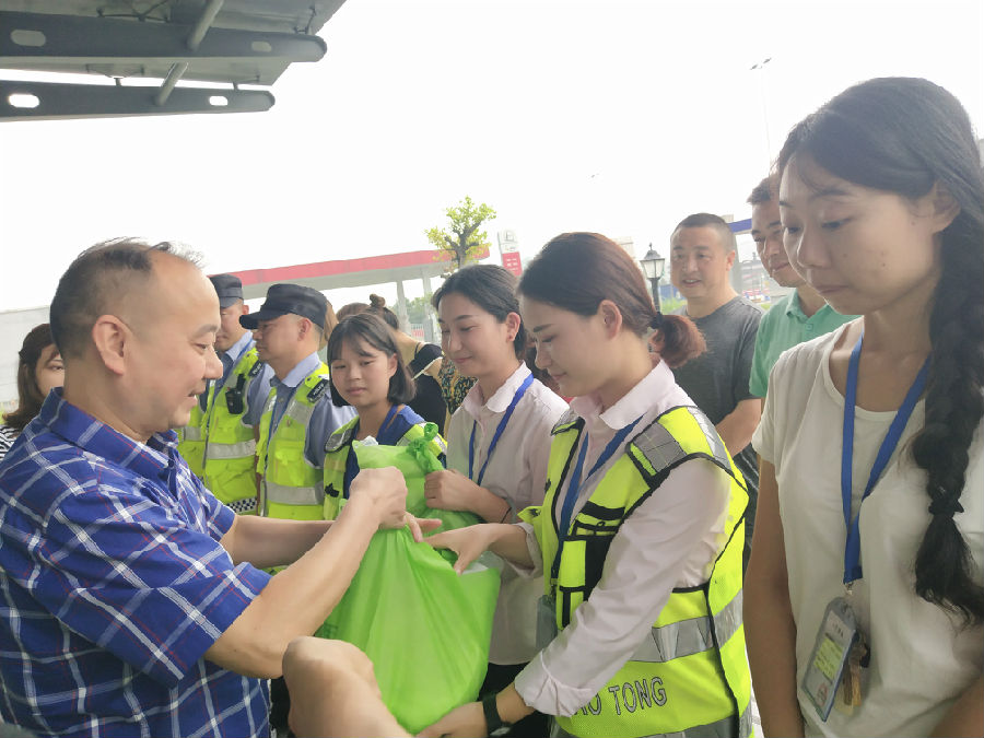 田青春主席為大家送上毛巾、香皂、洗衣液、飲料等防暑降溫物品,感謝他們?yōu)槔@城高速公路安全暢通所做出的貢獻(xiàn)。同時(shí)要求繞城所管理層要時(shí)刻關(guān)心、關(guān)注一線干部職工,確保隊(duì)伍穩(wěn)定,力促繞城高速運(yùn)營(yíng)管理工作順利推進(jìn)。
