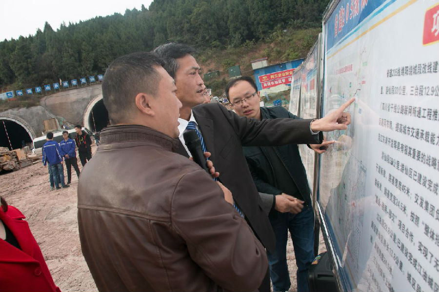 2018年11月7日下午,集團公司領(lǐng)導班子成員調(diào)研金家林新增大型戶外宣傳牌、省道205老龍山隧道工程、繞城高速永明互通立交主線工程等重點項目。