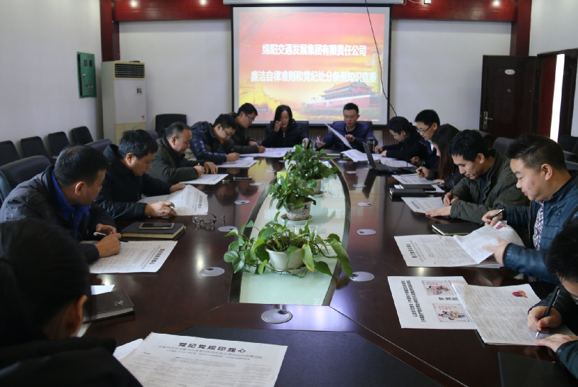 為進(jìn)一步教育和引導(dǎo)集團(tuán)總部黨員干部主動(dòng)學(xué)習(xí)黨章黨規(guī)黨紀(jì),自覺(jué)以高標(biāo)準(zhǔn)嚴(yán)格要求自己,嚴(yán)守紀(jì)律“底線”,增強(qiáng)紀(jì)律和規(guī)矩意識(shí),集團(tuán)總部12月21日在三樓會(huì)議室舉行了《中國(guó)共產(chǎn)黨廉潔自律準(zhǔn)則》和《中國(guó)共產(chǎn)黨紀(jì)律處分條例》知識(shí)競(jìng)賽活動(dòng),此次競(jìng)賽有2個(gè)黨支部、25名黨員參加、參與率達(dá)100%。此次活動(dòng)在集團(tuán)掀起了學(xué)習(xí)新修訂的《中國(guó)共產(chǎn)黨廉潔自律準(zhǔn)則》和《中國(guó)共產(chǎn)黨紀(jì)律處分條例》熱潮。