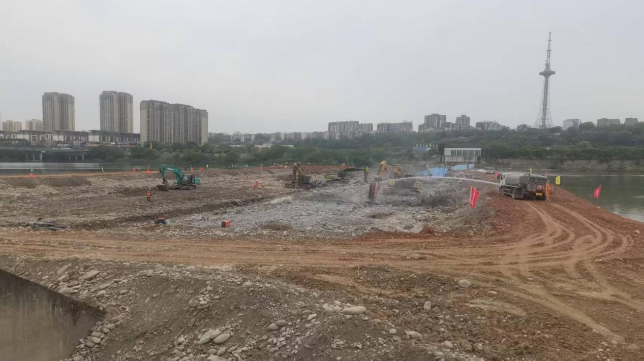 涪江綿陽城區(qū)開元橡膠壩綜合整治工程正式進入涉水施工