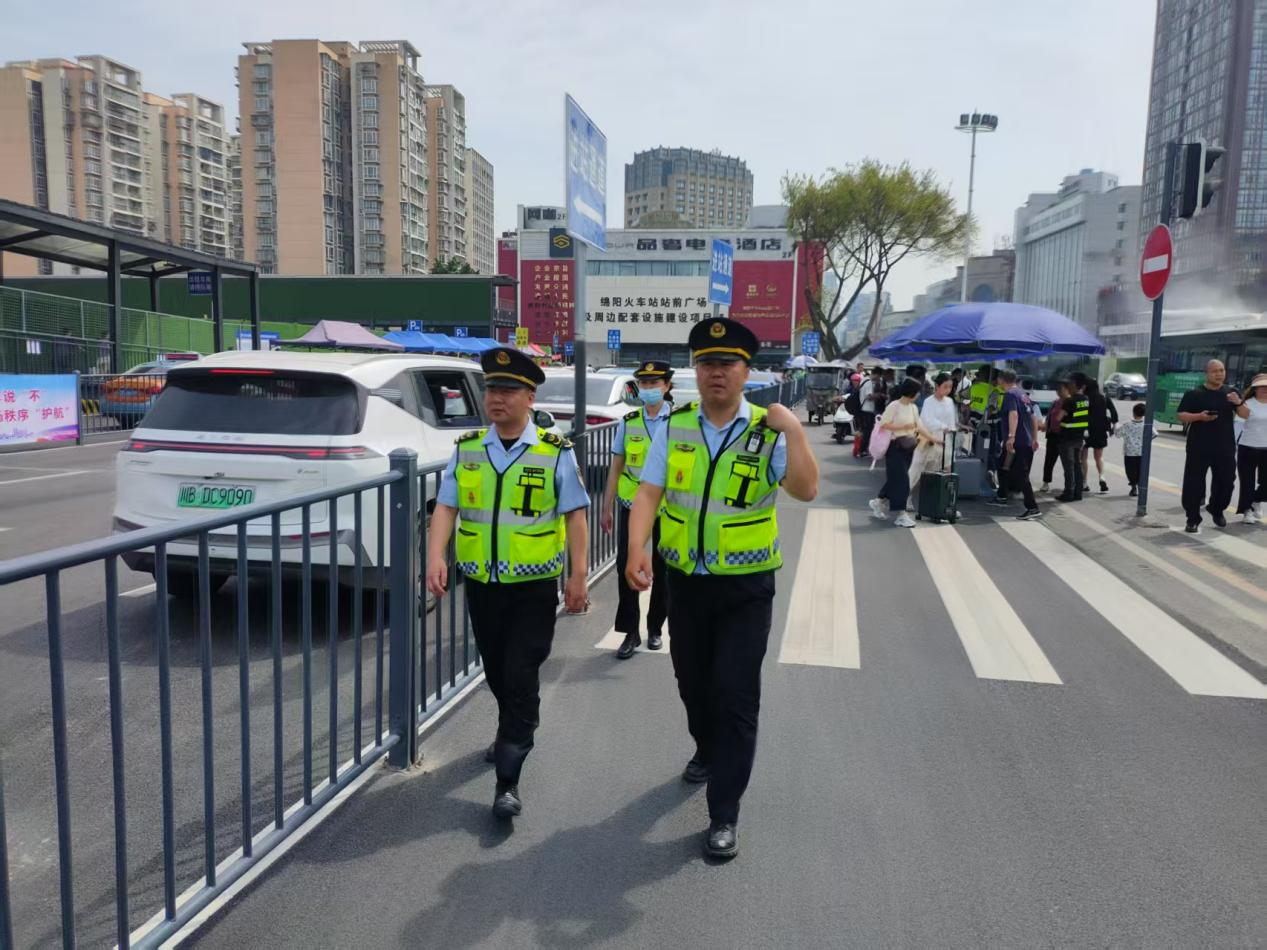 “五一”小長假期間,綿陽火車站迎來客流高峰,單日客流量較平日激增200%以上。面對洶涌的人流,正在緊張施工的站前廣場改造項(xiàng)目面臨巨大壓力。市交通運(yùn)輸局、市公安交警支隊(duì)、涪城區(qū)交通運(yùn)輸局、涪城交通運(yùn)輸局聯(lián)合執(zhí)法大隊(duì)、涪城區(qū)綜合執(zhí)法局、鐵路派出所、花園派出所、綿陽火車站、交發(fā)集團(tuán)及施工單位四川路橋等單位領(lǐng)導(dǎo)親自蒞臨站前廣場指揮協(xié)調(diào)交通疏散工作,通過科學(xué)調(diào)度、優(yōu)化施工、強(qiáng)化服務(wù),確保旅客出行安全有序。